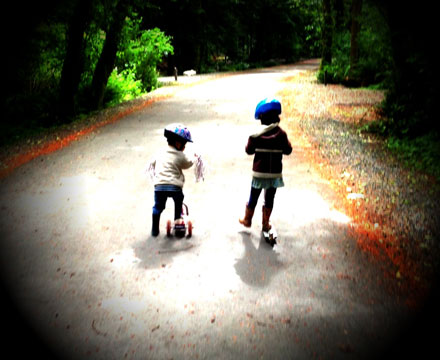 I think it was Frost who spoke about two roads diverged in a wood and that taking the one less traveled having made all the difference…I wonder about this, and even though I do subscribe to the notion, find myself considering the more traveled road from time-to-time…if only for its promise of something easier and less concerned. It’s an illusion I know…a mirage that promises to quench every aching and desperate thirst…an oasis built on bended light but no matter, and therefore a dangerous path to chase. Still, the toil can be heavy some days, much more than others…weighted even more so by the reflection and display of some so less inclined to take that better road…and I am dismayed and disappointed and taken aback, sigh. So…in those moments when I question my purpose and resolve – in that instance when my decision or action will mean the difference between that easy road and the one less traveled…I open my eyes to see those two little souls who lead me everyday, and that makes all the difference.